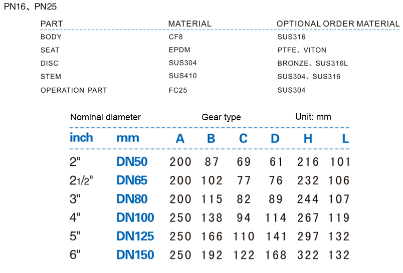 Nominal pressure: 1. 6MPa, 2.5MPa